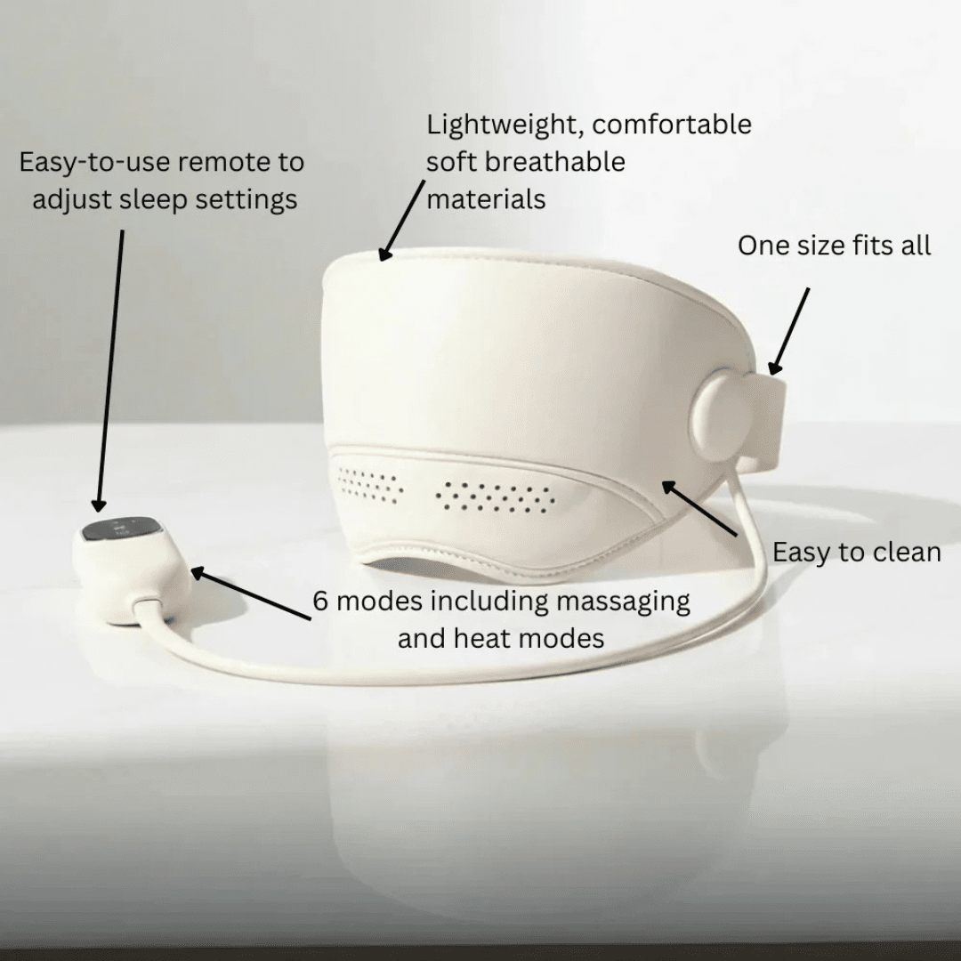 A: DreamWeaver Pro is primarily designed as a pre‑sleep relaxation tool. We recommend using heat and massage for limited sessions, then switching them off if you plan to wear the mask while you sleep.